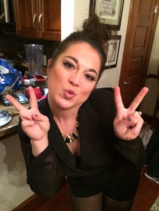 I loved this romper and necklace from Rent the Runway. I paired the romper with tights, sky high pumps, and a leather jacket to offset the delicate sheer panels. Oh, and that hella high bun is everything.