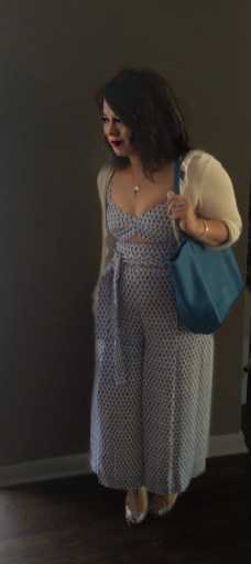 Last up for today’s show and tell is, obviously, another romper. This is more of a jumpsuit, and was certainly meant to hit mid-calf. But I’m 5’3″ and it’s a big no-no to take your rentals in for altering. Also, I was out of fashion tape.